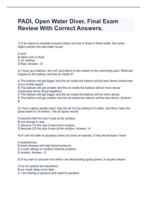 Online PDF open_water_diver_final_exam_answers Hardcover Gutenberg